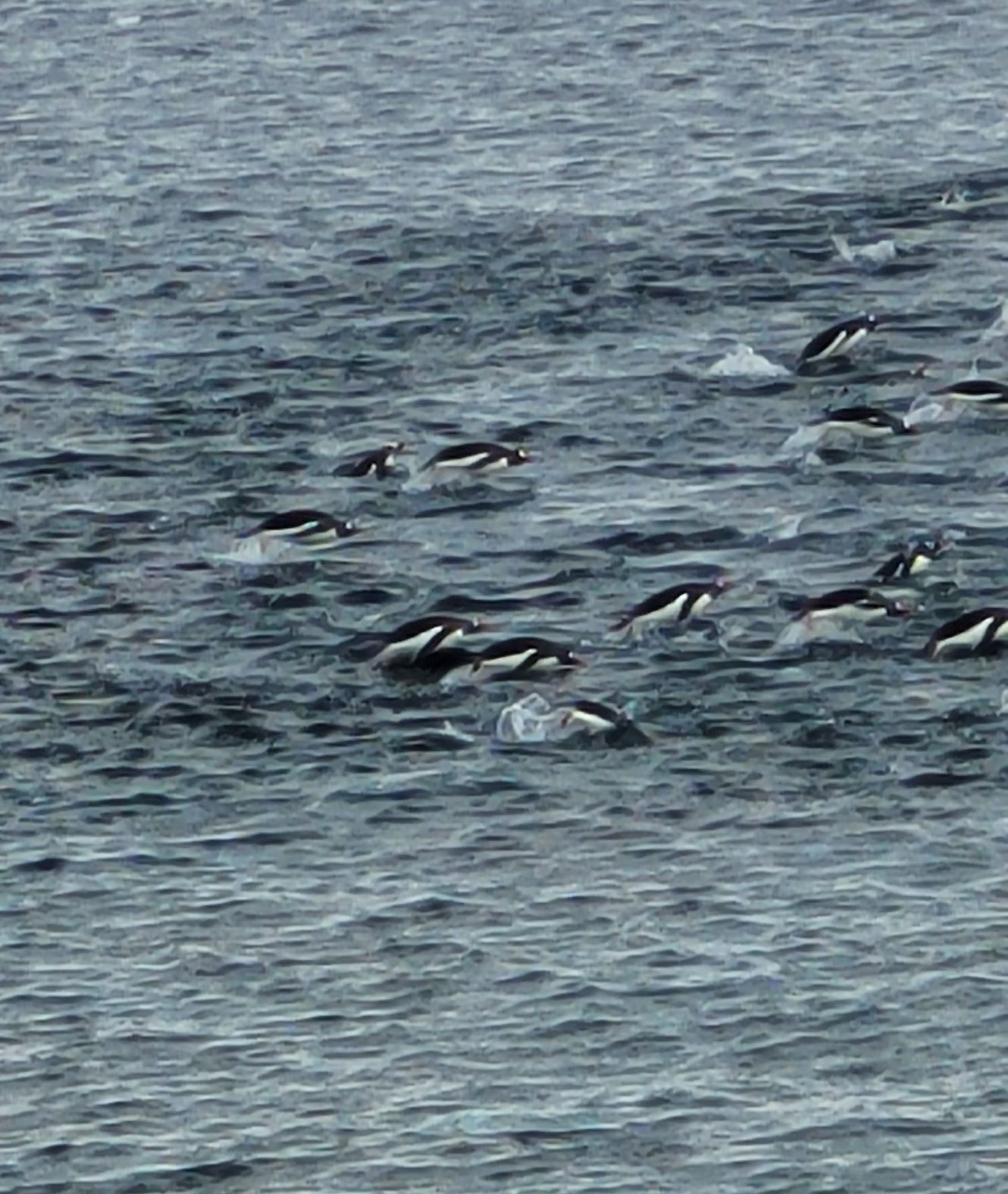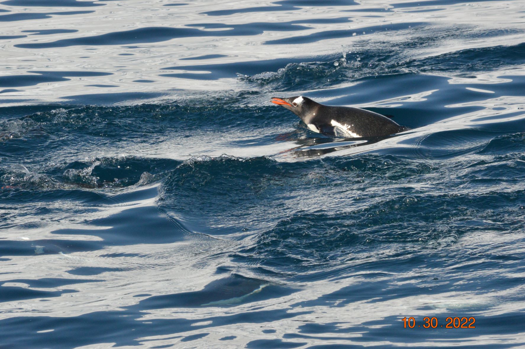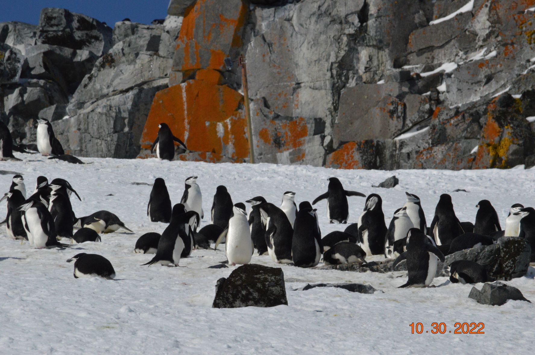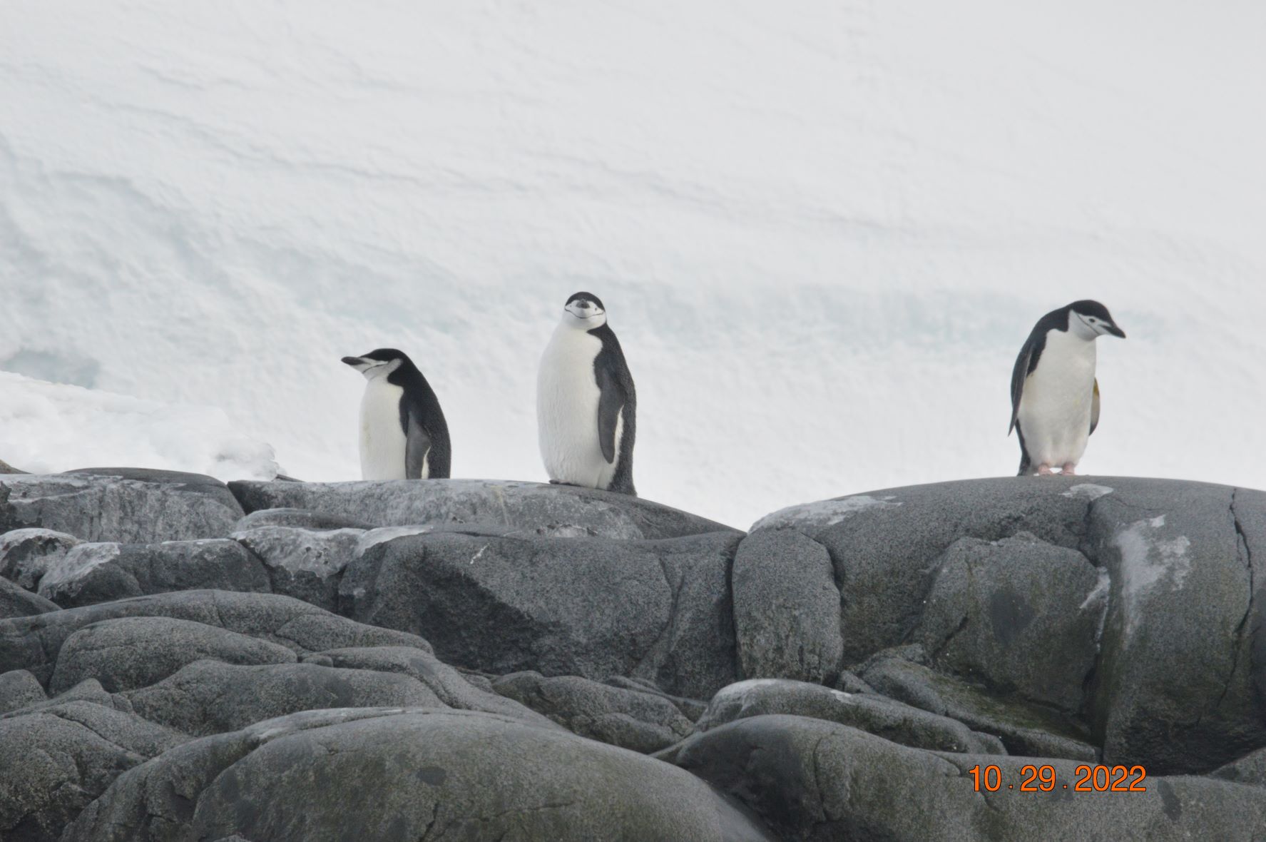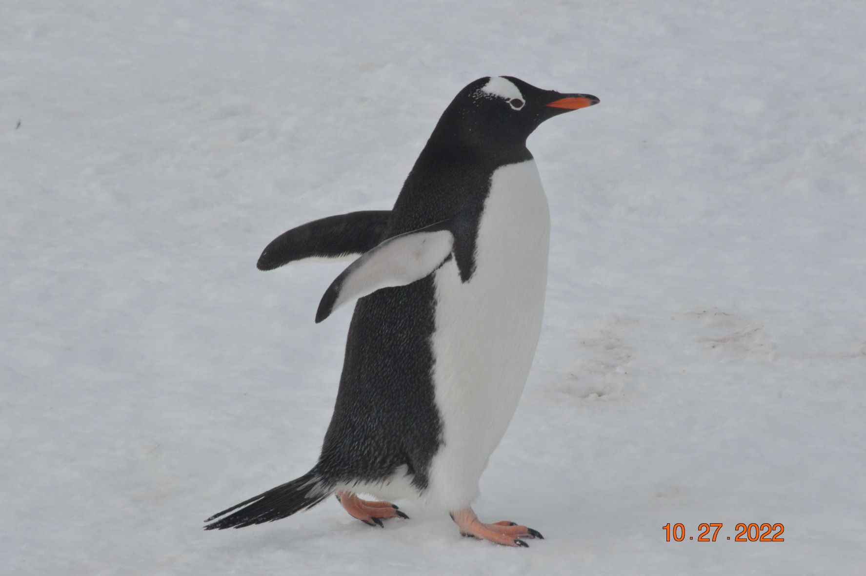 We saw two different type of penguins, the gento and the chinstrap. The gentos have a large black band around the head while the chinstrap have a thin black band under the head. At the time of the spring the penguins were just coming back to nest. They nest in groups, but the different types do not mix. It was so early that they had not started to make their nests as they would wait until the snow had melted and they were able to make the nests on the rocks.“